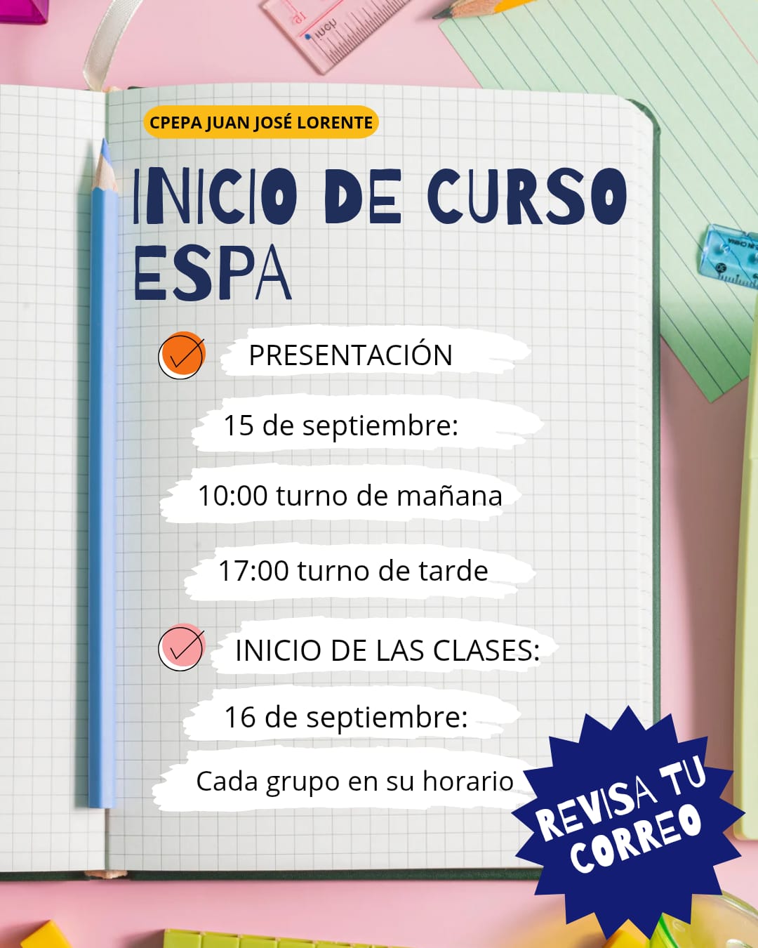 En la presentación se entregarán los horarios. A partir del día siguiente comenzarán las clases en el horario de cada grupo.